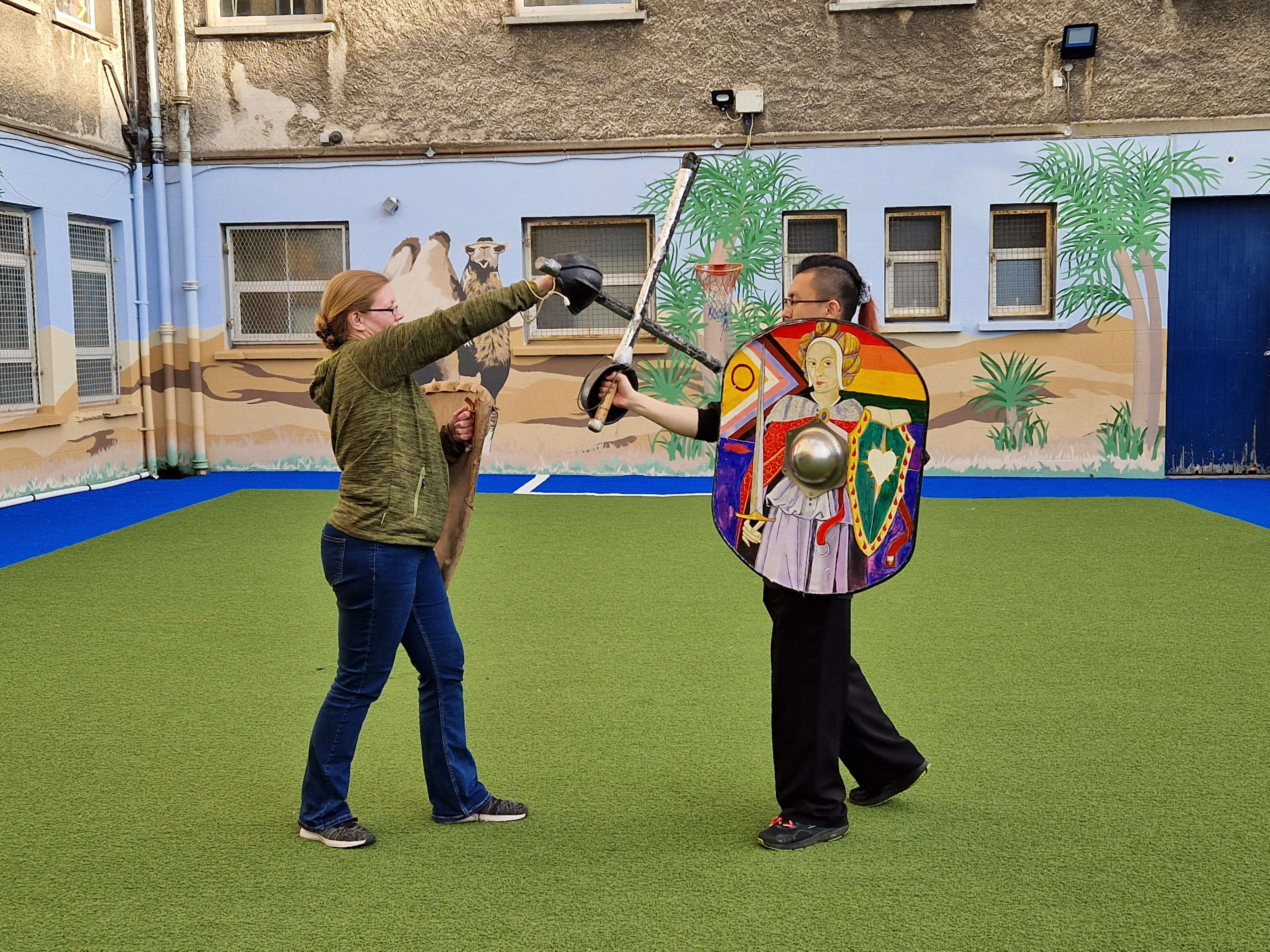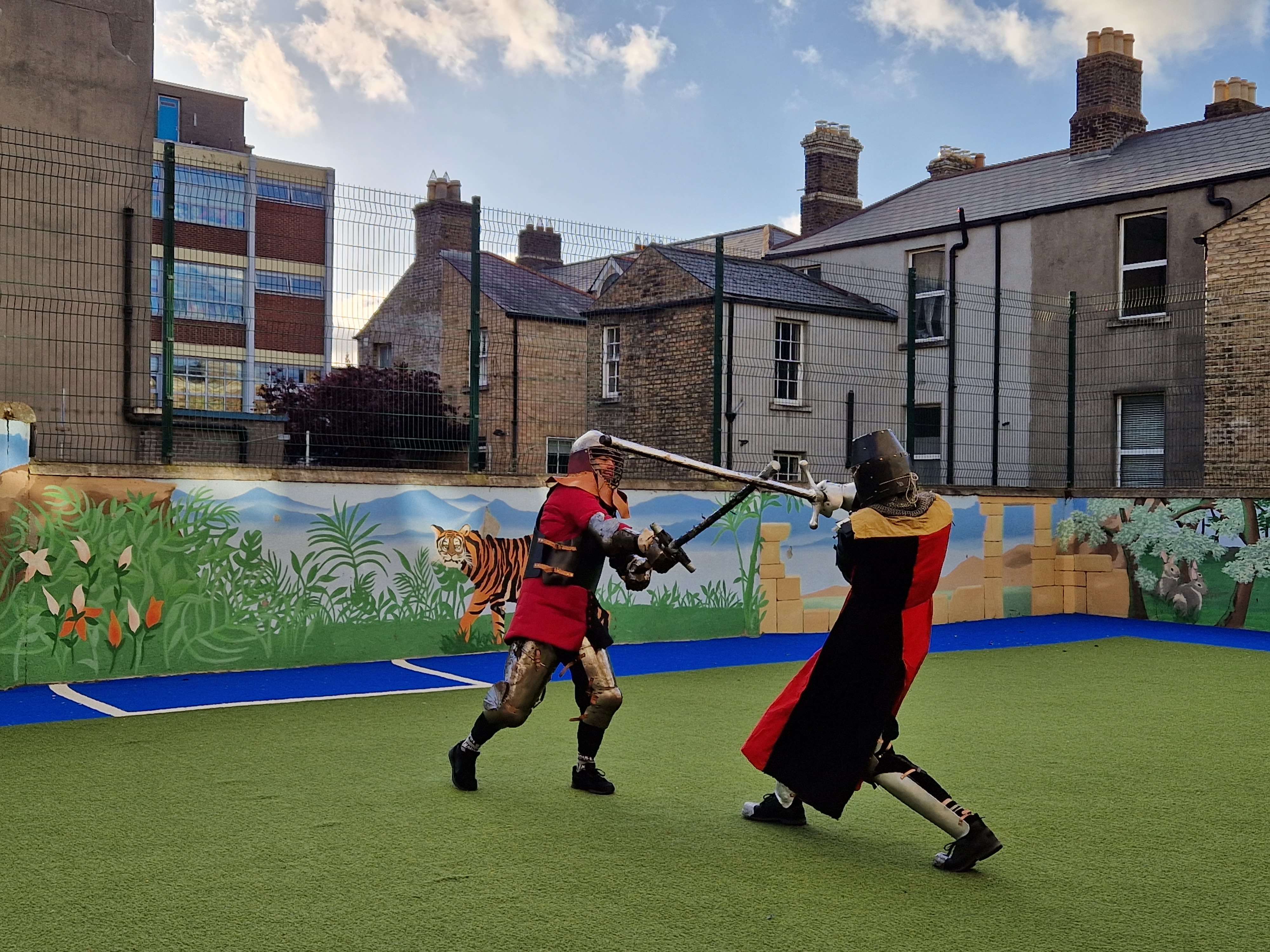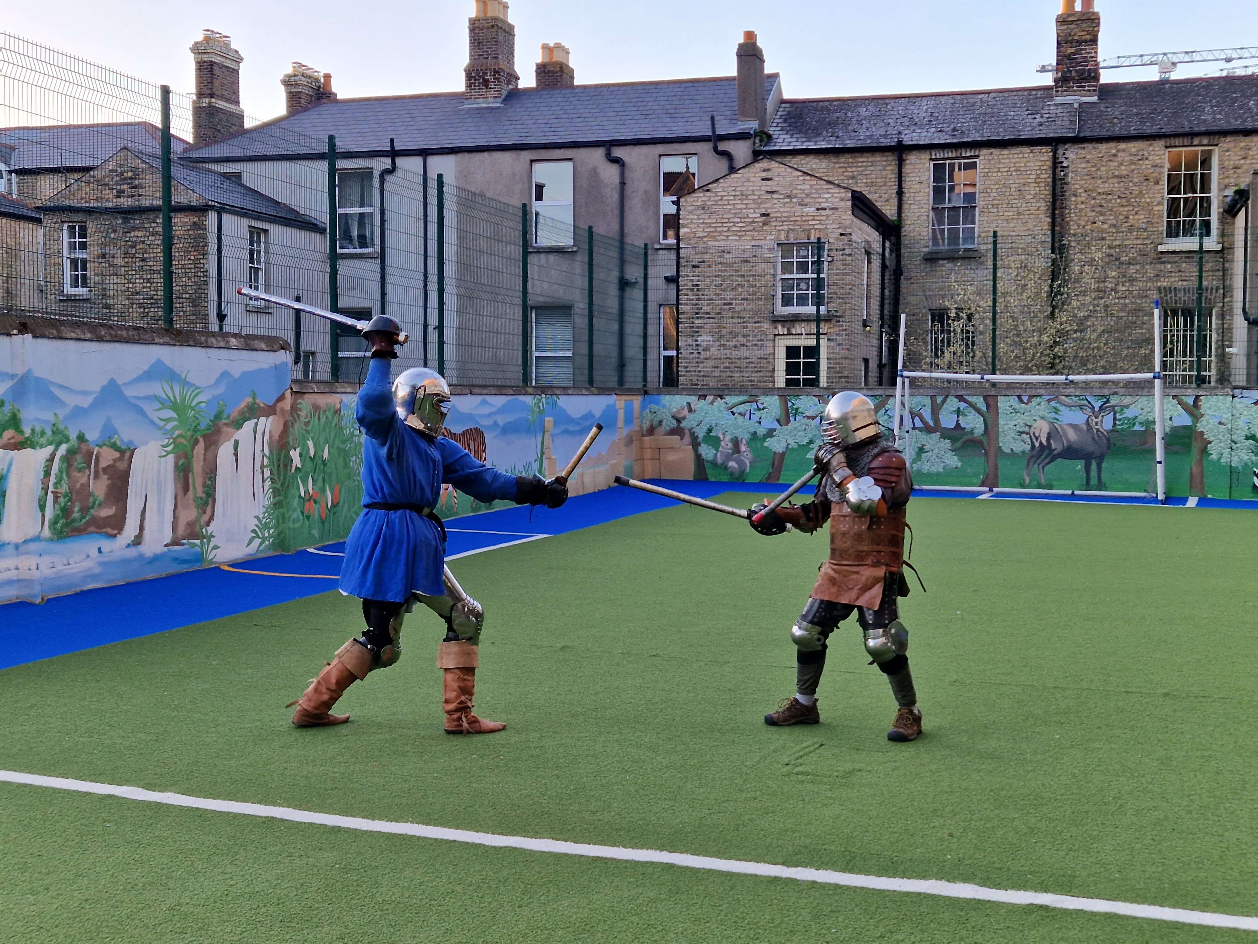 What to expect in your first class: We will introduce you to everyone (c.6-8 people usually) and tell you about our sport, our Society and the kind of gear we use. You will get to see us train sword technique and movement through solo and pair exercises and through sparring. We will teach you the basic stance and the basic way of handling a wooden sword. If you wish, you can try on some gear and even lightly spar with one of our fighters.