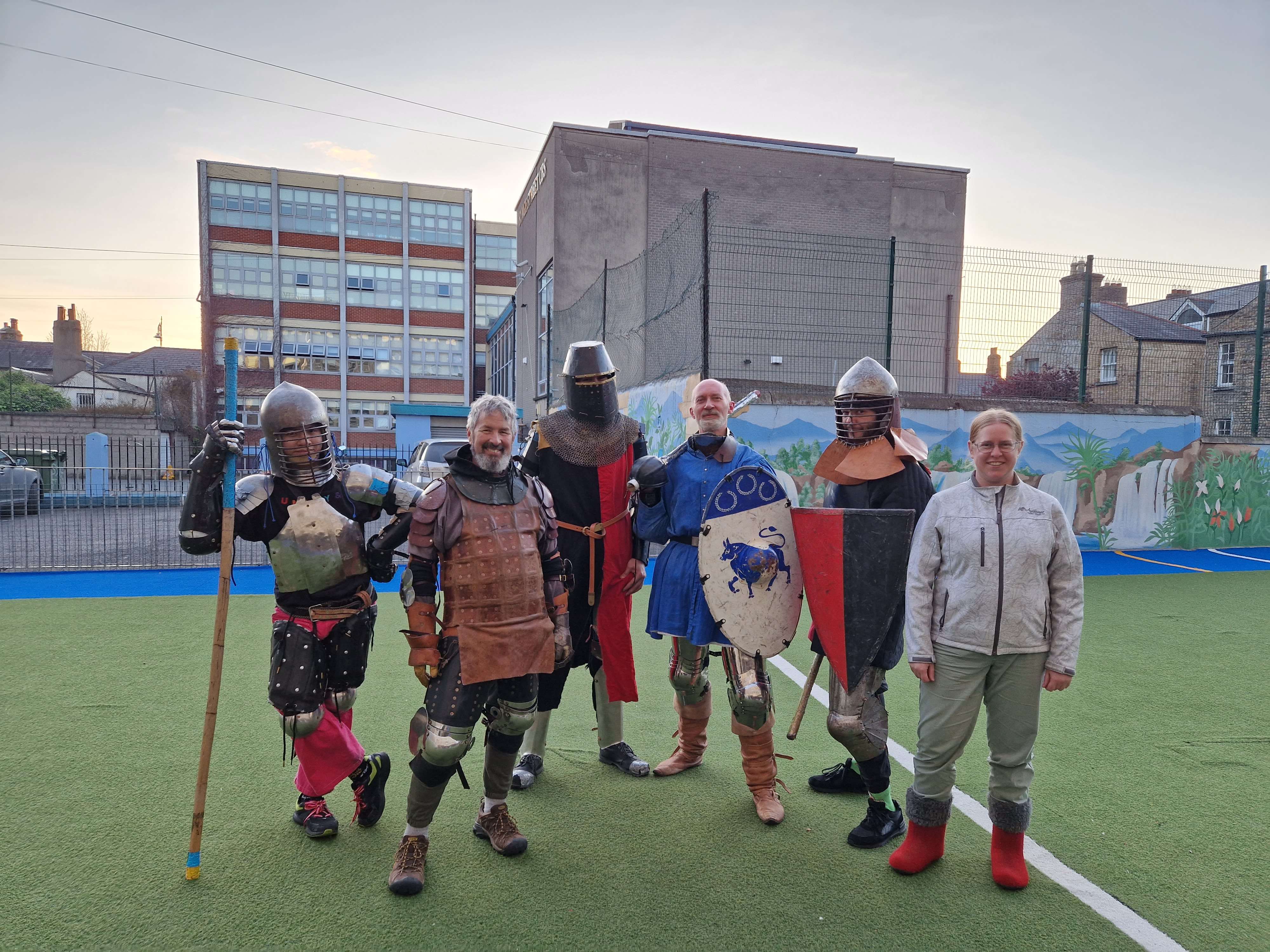 Armoured combat is practiced by people of all genders and we welcome everyone. Our practice in Dublin is very diverse. We not only train together, but also compete against each other, rather than segregating the combatants according to gender. A great deal of skill in armoured combat in the SCA lies in technique rather than in strength or size.